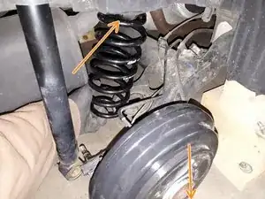 Чтобы заменить другую заднюю пружину, повторите процедуру на противоположной стороне автомобиля. По завершении опустите автомобиль домкратом.