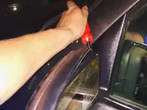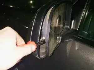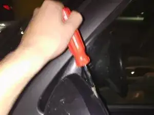 Вставьте отвёртку в левую часть зеркала и приложите усилие, чтобы освободить защёлку.
