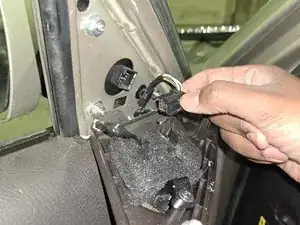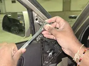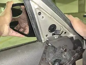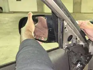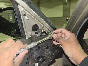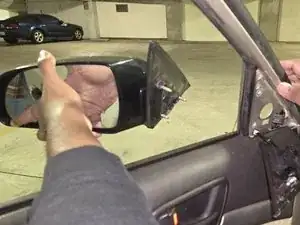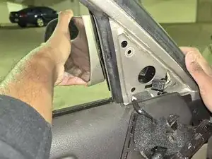 Убедитесь, что автомобиль выключен, чтобы избежать электрического шока. Обеспечьте достаточно места для перемещения вокруг двери, чтобы не уронить зеркало.