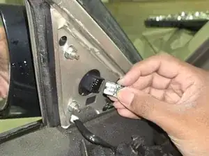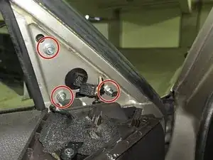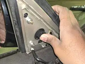Вставьте новое боковое зеркало, совместив болты с тремя отверстиями.