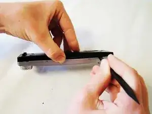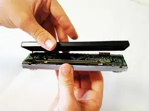 Осторожно сдвиньте её вправо, пока не почувствуете, что экран отщёлкнулся.