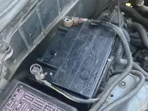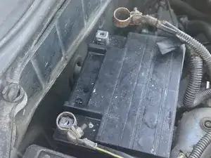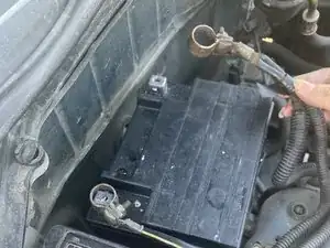 Снимите правую клемму аккумулятора с вывода, затем снимите левую клемму с вывода.