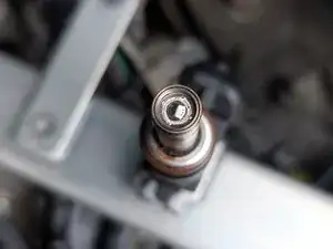 Отверните 2 болта 8 мм, удерживающие топливную рампу.