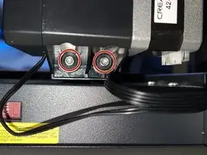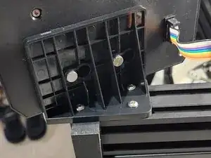 Чтобы снять шаговый двигатель Y, удалите 2 винта M5x12 с полукруглой головкой на нижней части крепления шагового двигателя.