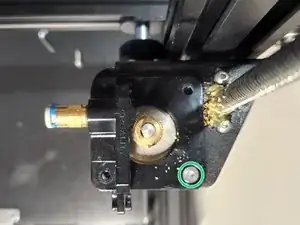 Удалите 1 винт M3x8 с потайной головкой с помощью 2 мм шестигранного ключа. Снимите шаговый двигатель экструдера и отложите в сторону.