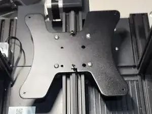 Снимите пластину X-каретки, ослабив эксцентриковую гайку снизу пластины 10 мм ключом и сдвинув пластину с профиля 2020.