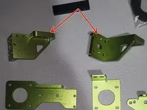 Возьмите 2× фиксатора ремня по оси Y и крышки фиксаторов ремня. С помощью 4× M3×10 винтов с цилиндрической головкой частично прикрутите крышки к фиксаторам.