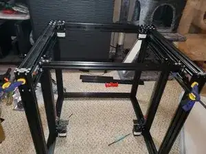 При снятии зажимов измерьте расстояние от вертикального профиля 2040 до фасада 460 мм 2020 — вы должны получить одинаковое значение (в пределах 1 мм). Если так, снимите зажимы и продолжайте. Если размеры отличаются более чем на 1 мм, проверьте выравнивание 460 мм 2020 в X-креплении.