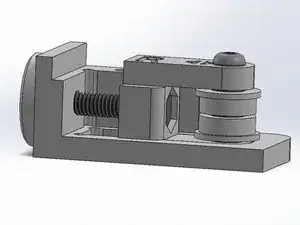 Вставьте винт с кнопочной головкой M3x18, чтобы закрепить узел подшипника к слайду натяжителя.