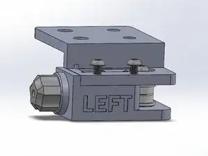 Накрутите верхнюю пластину левого натяжителя на нижний узел с помощью 2x винтов с кнопочной головкой M3x18. Не затягивайте полностью.