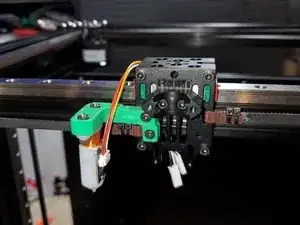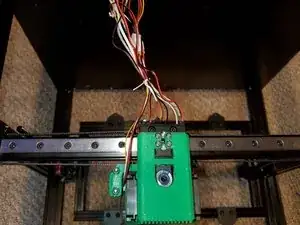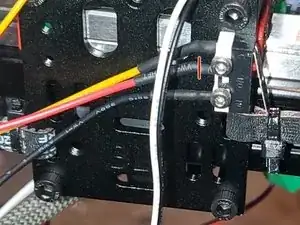 Убедитесь, что провода термистора и нагревателя находятся слева от хотенда. Это предотвратит попадание проводов в область X-концевика.