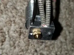Вставьте термистор в нагревательный блок и затяните маленький прижимной винт.