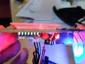 чтобы чёрная крышка оставалась прижата к плате/ленте, я положил сверху чёрную прочную клейкую ленту поверх крышки красного светодиода, чтобы закрепить её окончательно.