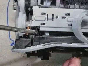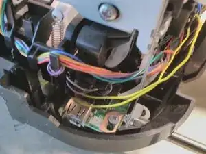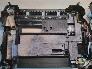 Теперь можно осторожно приподнять принтер от нижней части корпуса, соблюдая осторожность с проводкой!