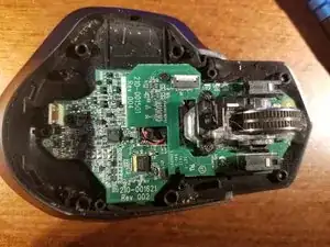 Пора немного сменить инструмент! Плата с переключателями левого и правого клика снимается четырьмя винтами P0 и ещё одним ZIF-разъёмом.