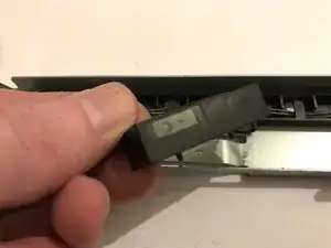 Вставьте лопаточку позади каждого конца пластиковой планки. Подденьте наружу, чтобы отщелкнуть и оттянуть концы вперед от принтера.