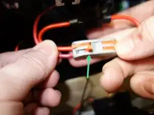 Поднимите оранжевый рычаг на открытом контакте и вставьте один обнаженный конец как можно глубже в отверстие, затем зафиксируйте рычаг. Повторите для другой стороны.