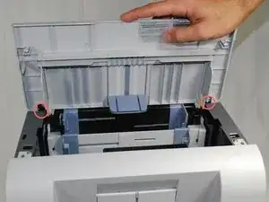 Отверткой Phillips #2 открутите два винта длиной 1" на передней части принтера.