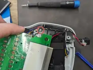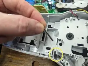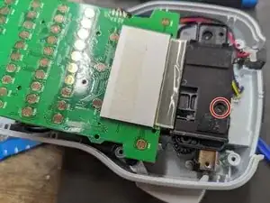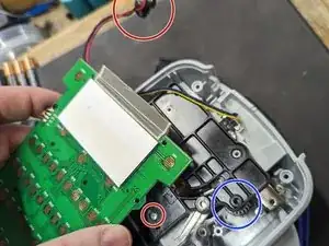 Теперь у вас должно появиться достаточно свободы у платы, чтобы удалить оставшиеся винты в пластиковом корпусе внизу (см. следующий шаг для деталей).