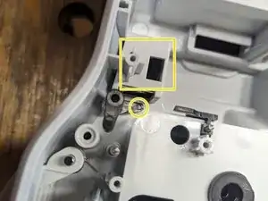 Как только вы получите доступ к маленькому рычажку, показанному с жёлтым кругом, можно приступать к непосредственному ремонту.