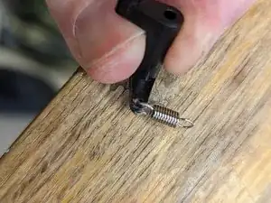 Теперь можно присоединить пружину к отремонтированному рычагу, зацепив открытый конец пружины.