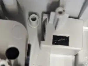 Наконец, нужно вернуть пружину через отверстие в корпусе и с помощью пинцета или крючковой лопатки надеть её обратно на металлический штифт.