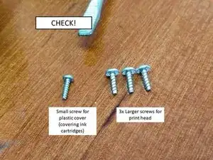 1× маленький/тонкий винт (для белой пластиковой крышки над картриджами)