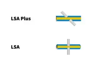 LSA Plus: В этой технологии клеммы с вытеснением изоляции находятся под углом 45° к кабелю.