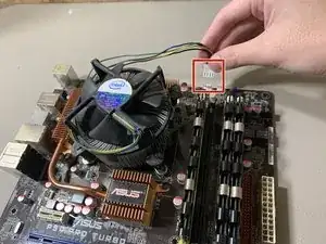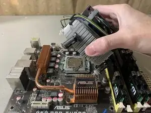 Снимите охладитель с материнской платы и отложите его в сторону.
