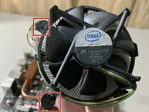 Переустановите охладитель процессора и верните четыре фиксатора, поворачивая их по часовой стрелке, чтобы закрепить его на материнской плате.
