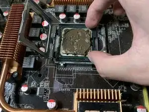 Удерживая процессор большим и средним пальцами, снимите его с материнской платы.