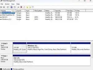 В «Диспетчере устройств» вы увидите нераспределённый диск. Инициализируйте диск и присвойте ему имя; в данном примере новый диск назван SSD (P:).