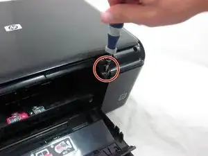 Затем отвинтите винт, расположенный напротив ползунка принтера.