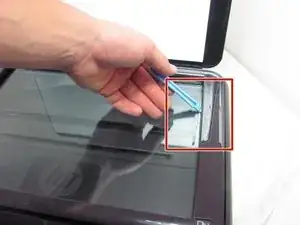 Используйте пластиковый инструмент для вскрытия, чтобы снять пластиковую рамку, окружающую стекло.