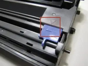 Очистите проволоку короны внутри блока барабана, аккуратно перемещая синий язычок сначала влево, а затем обратно вправо. Повторите несколько раз.