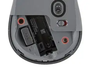 Используйте отвертку Phillips, чтобы удалить два винта длиной 5.5 мм, которые крепят две половинки мыши друг к другу.