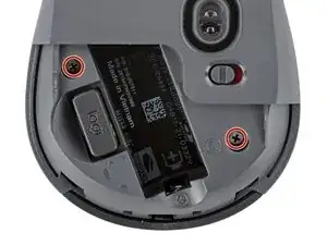 Используйте отвертку с крестовым шлицем, чтобы удалить два винта длиной 5,5 мм, удерживающих две половинки мыши вместе.