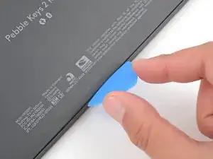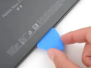 Вставьте плоский край монтажной лопатки в зазор между двумя половинами клавиатуры, около центра нижнего края.