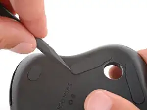 Крепящие винты скрыты под ножками мыши — их нужно удалить, чтобы открыть мышь.