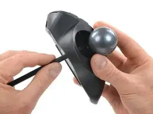 С помощью лопатки выдавите шарик трекбола из его гнезда.