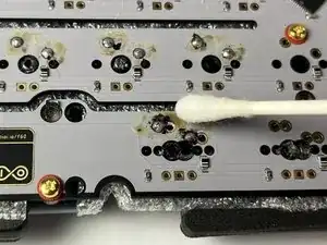При желании нанесите на ватную палочку изопропиловый спирт и очистите остатки флюса с паечных соединений.