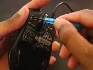 Удалите накладки мыши, чтобы открыть доступ к винтам, которые держат нижнюю и верхнюю части мыши вместе.
