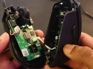 После удаления винтов аккуратно потяните мышь, удерживая верхнюю и нижнюю части.