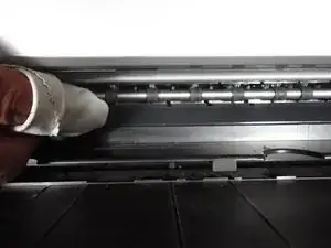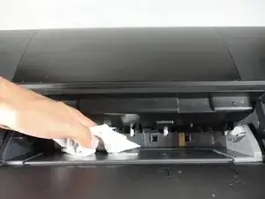 Если внутри принтера есть пятна чернил или грязь, протрите указанную пластиковую область полотенцем.