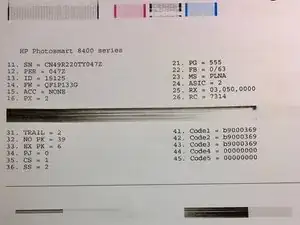 Если автоматическая очистка картриджа была успешной, принтер напечатает хорошо выглядящую тестовую страницу. Если очистка не удалась, вы получите страницу, которая выглядит немного так же, как у меня.