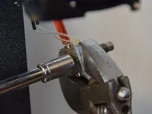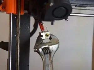 Нагрейте сопло до 285 градусов Цельсия, чтобы теплоотвод расширился, и удерживайте его гаечным ключом.