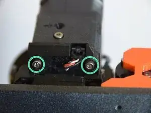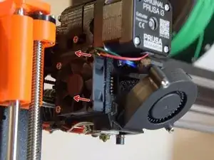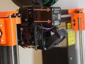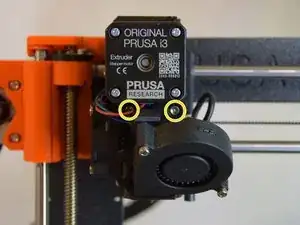 Ослабьте, но не выкручивайте винты M3x14, расположенные сверху сзади подающего механизма экструдера.