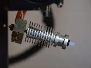 Затяните сопло ещё раз, пока не почувствуете, что резьба сопла касается резьбы теплоотвода — это предотвратит скопление пластика в резьбе теплоотвода.