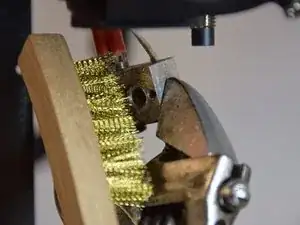 В данном случае для очистки медного сопла используется латунная щётка, чтобы не повредить его. Латунная щётка подойдёт для большинства сопел, однако уточните, из какого материала изготовлено ваше сопло, чтобы не повредить его.
