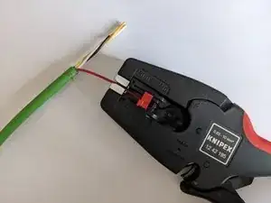 Удерживайте кабель с помощью инструмента для снятия изоляции и прокрутите его, чтобы разрезать оболочку.